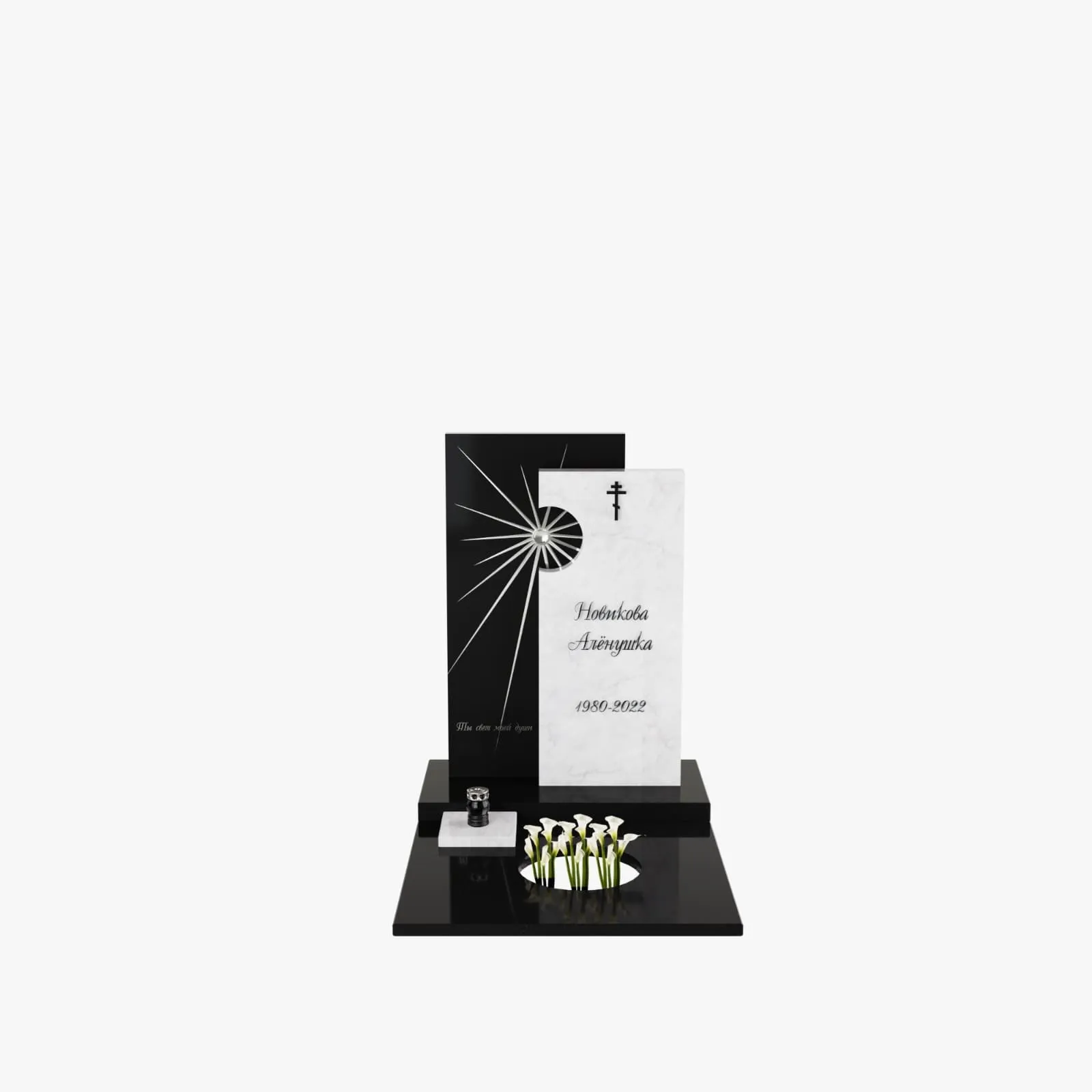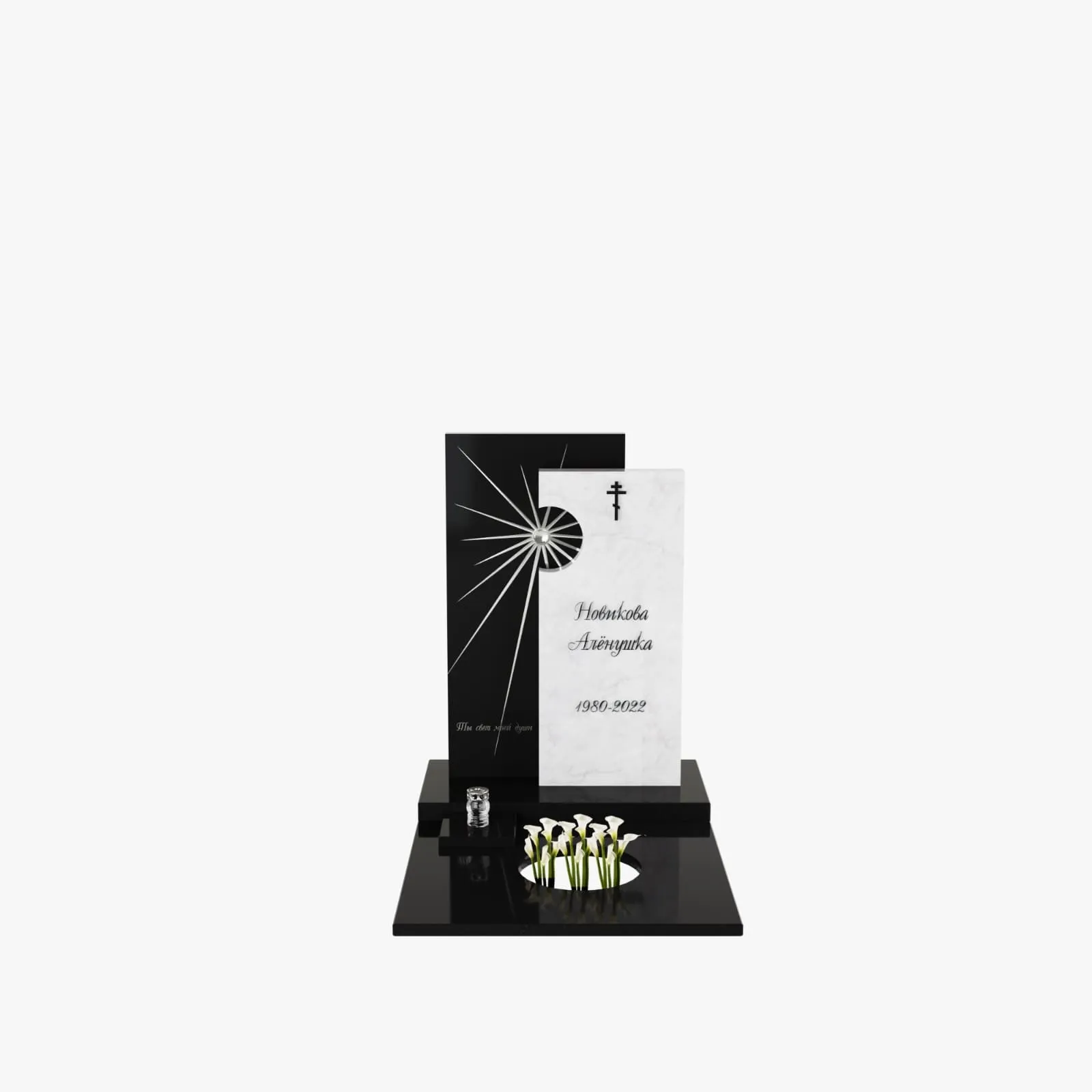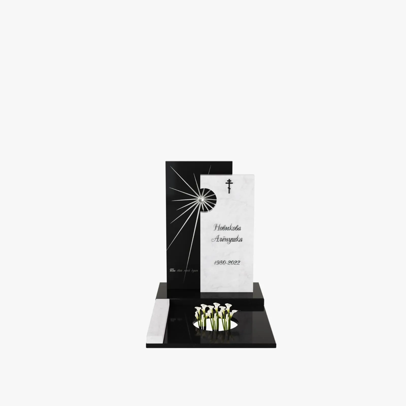 Цена модели на сайте указана без стоимости цветника и оформления стелы.